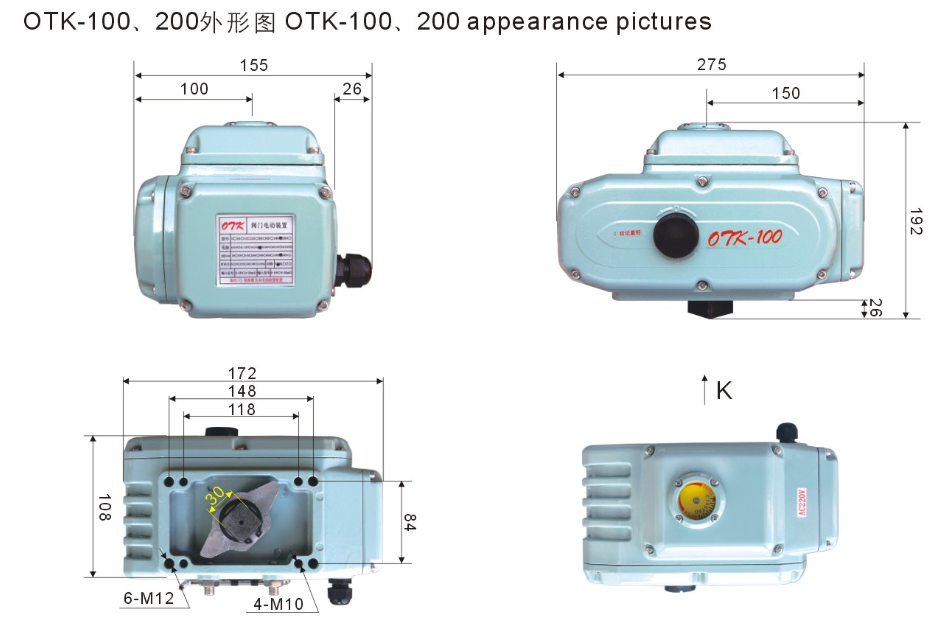6.防水性強、安裝方便:OTK系列電動執(zhí)行機構(gòu)的防水性產(chǎn)IP67;一個從未接觸過電動執(zhí)行器的人,只要學上二分鐘就會安裝。